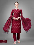 Kurti : Cotton Blend with Embroidery & Sequence Work Pant - Cotton Blend Dupatta - Silk Blend Length - 46 Inch Wash Care - Dry Wash Only